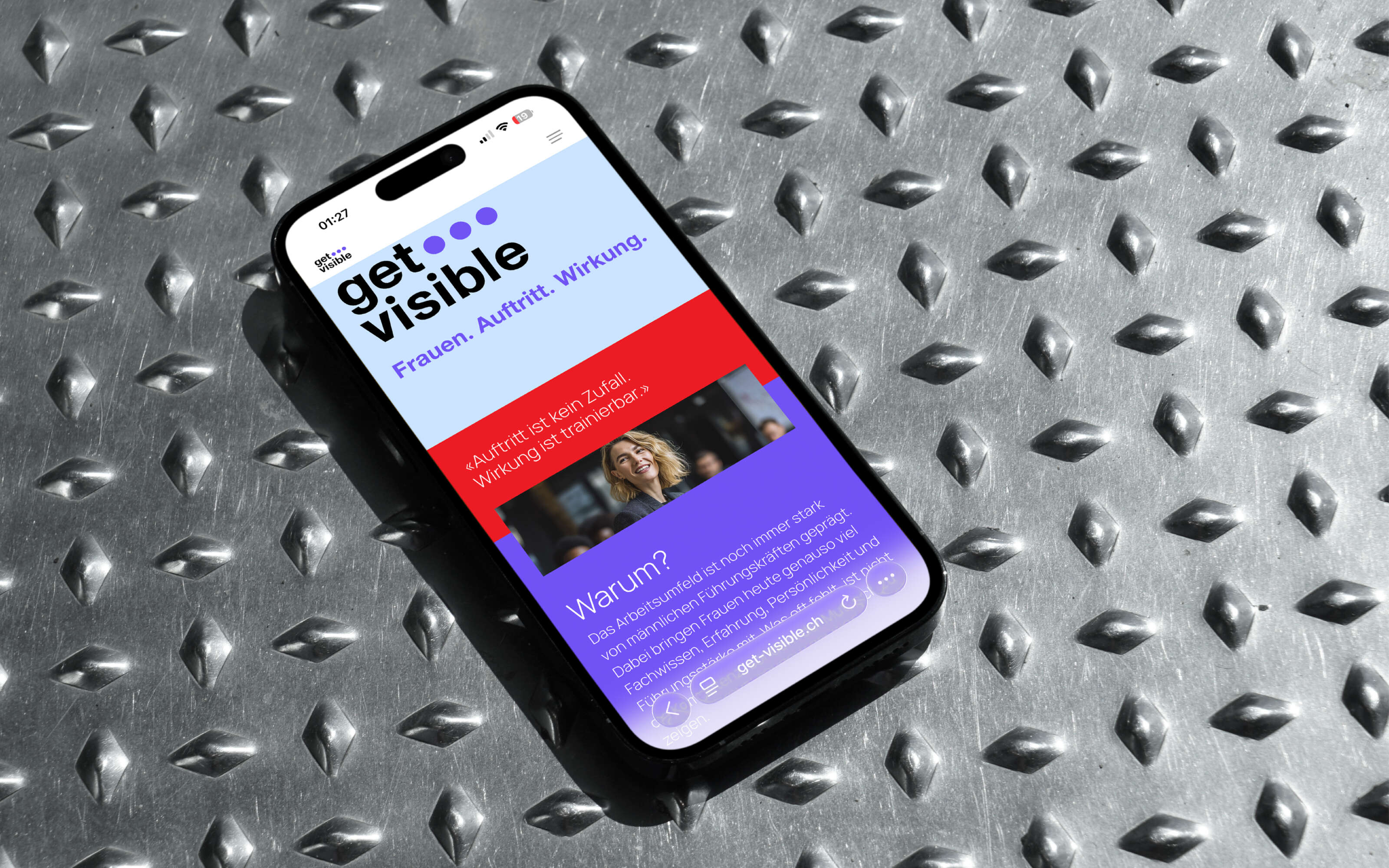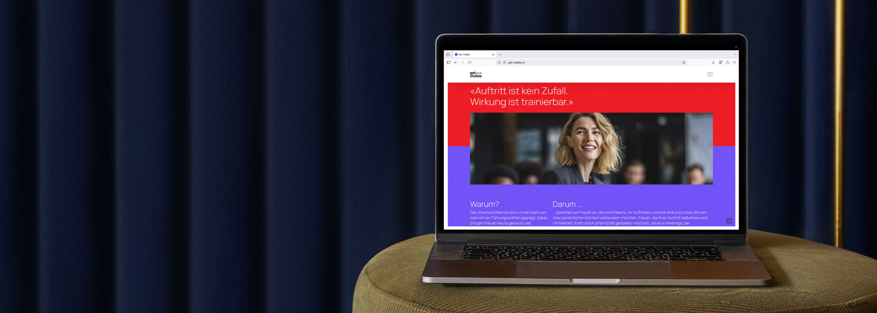 Damit Frauen in der Geschäftswelt und bei öffentlichen Auftritten die Präsenz erhalten, die ihnen zusteht, bietet «get visible!» Coaching für Auftritts- und Wirkungsoptimierung. Das Corporate Design und die Website präsentieren sich darum so selbstbewusst wie die Zielgruppe: klar in der Formensprache und unübersehbar in der Farbwahl.
