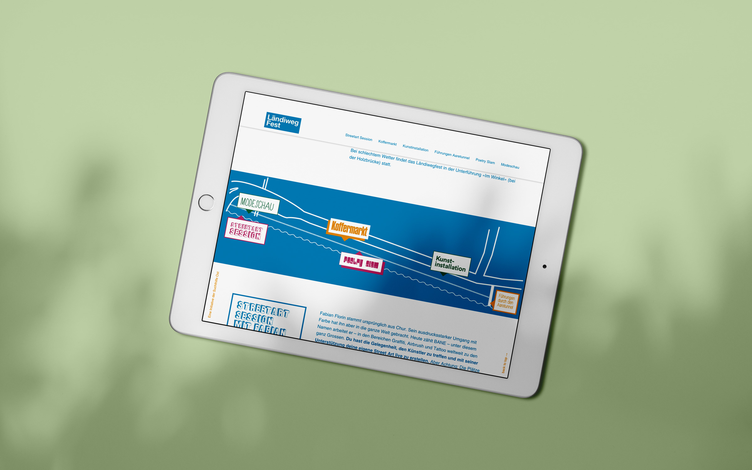 In Olten gilt er als «heisses Pflaster» und sorgt immer wieder für Diskussionen. Für einmal wird der Uferweg an der Aare aber zu einem Ort vielfältiger Begegnungen. Dank einer Initiative der Suchthilfe Ost findet zum ersten Mal das Ländiwegfest statt. Die Menschen in Olten freuen sich auf ein unterhaltsames Programm mit Streetart, Kunstinstallationen, Koffermarkt und Slam Poetry.