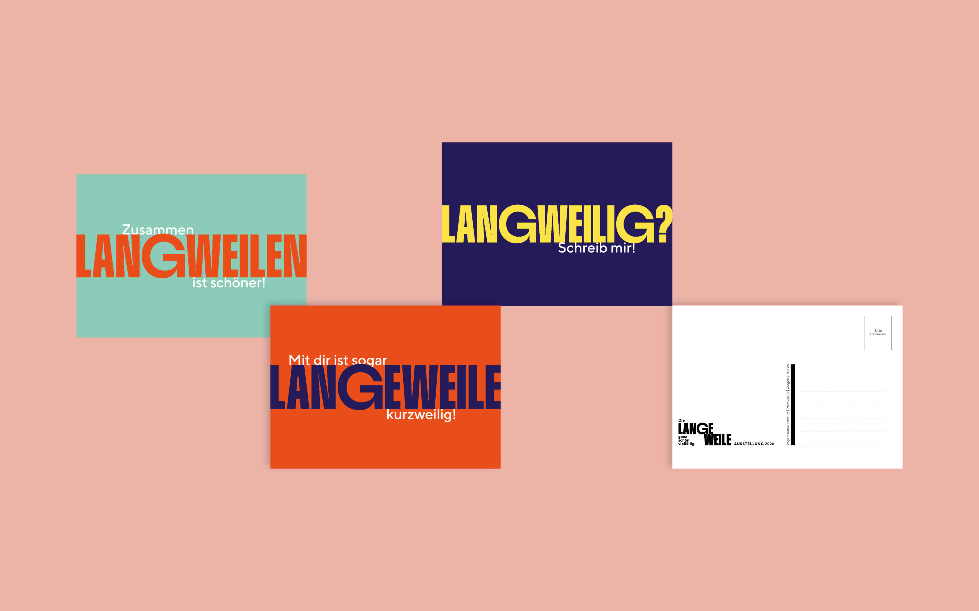 Überhaupt nicht BOOOOOOORING oder banal! Weder Thema noch Auftrag «Erarbeitung der Ausstellungskommunikation» vom Vögele Kultur Zentrum haben uns zum Gähnen gebracht. Das widerspiegelt dann auch das Ergebnis, das zeigt, wie vielseitig Langeweile sein kann.